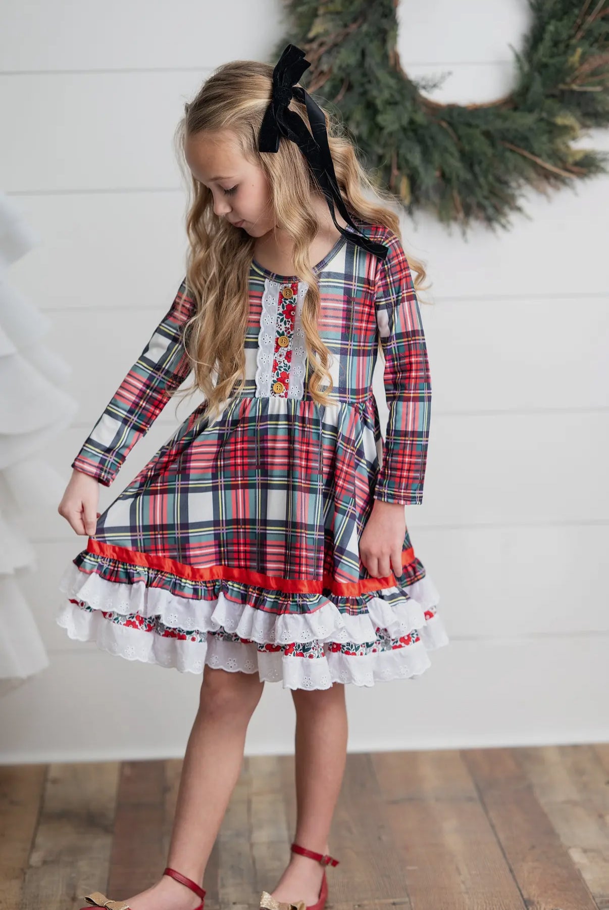 Cute Plaid Printed Baby Onesie with Cute Lace
