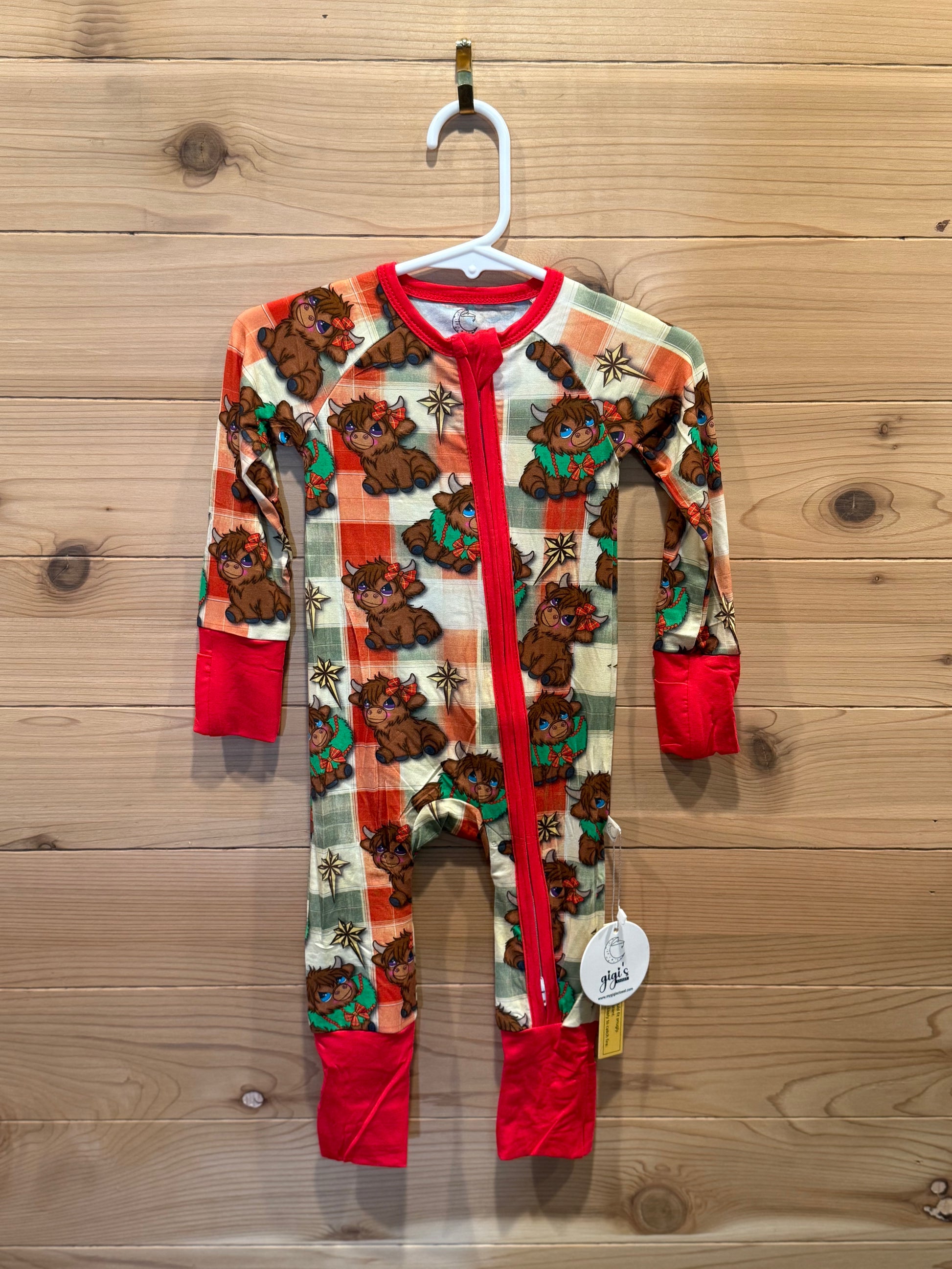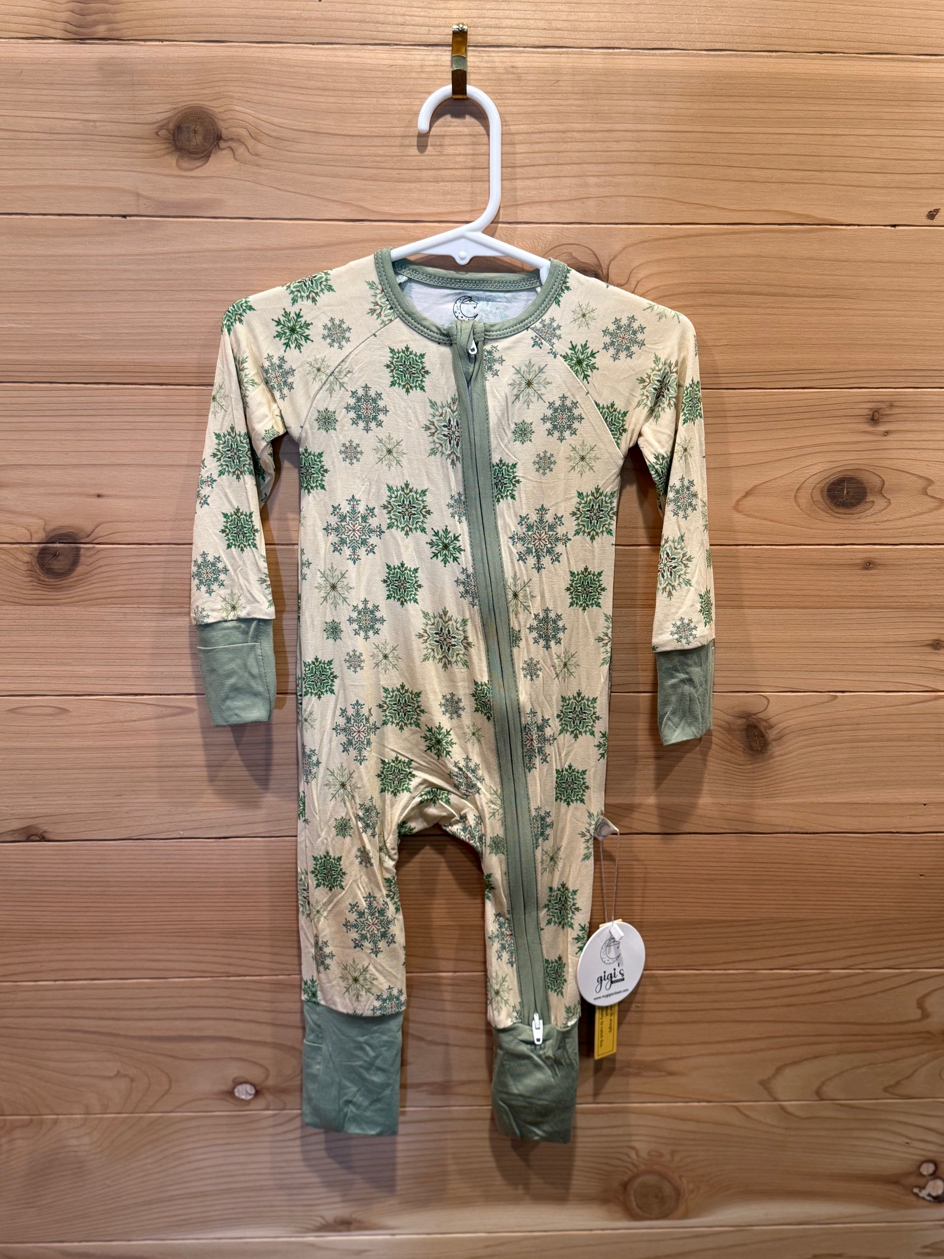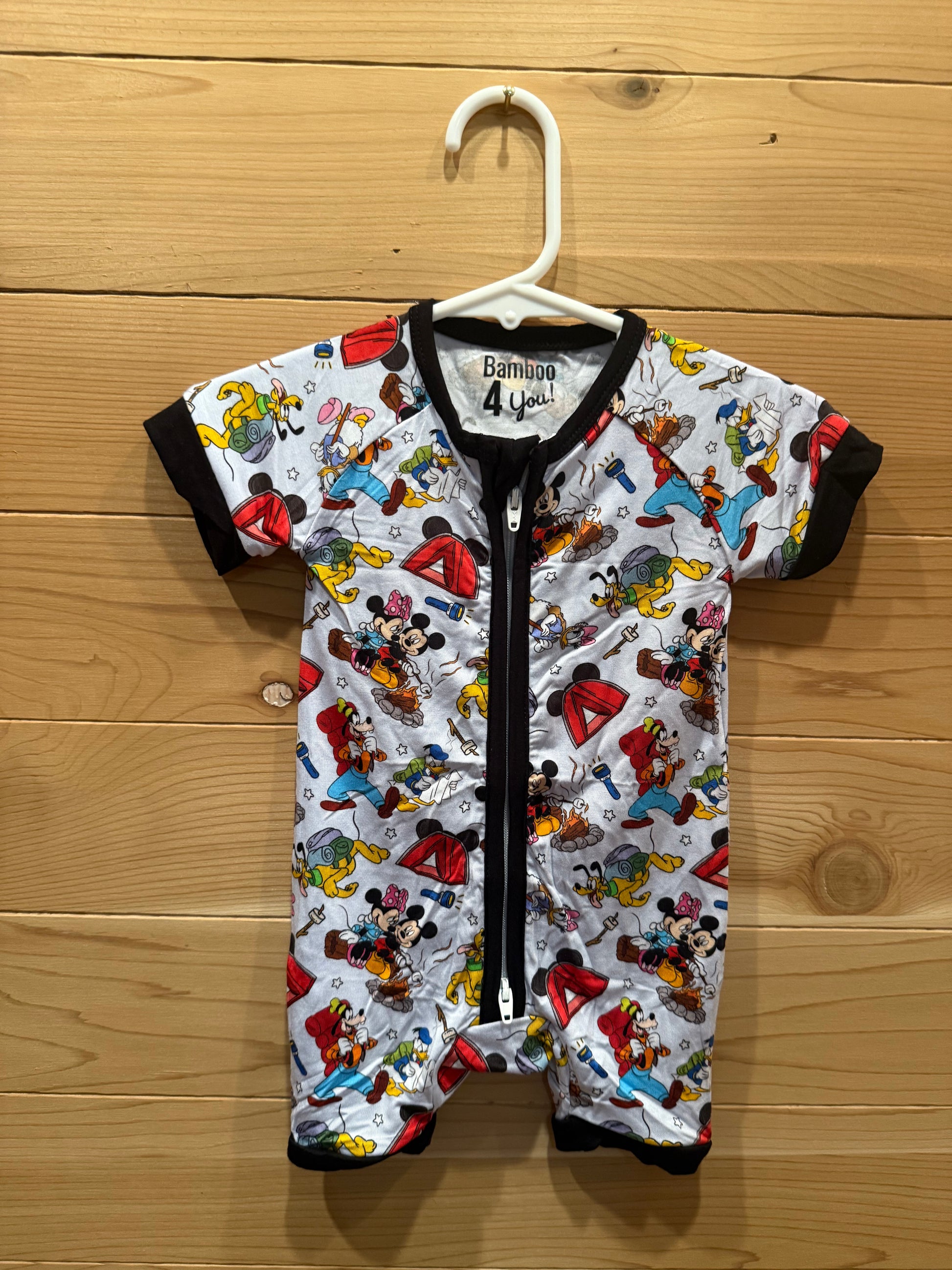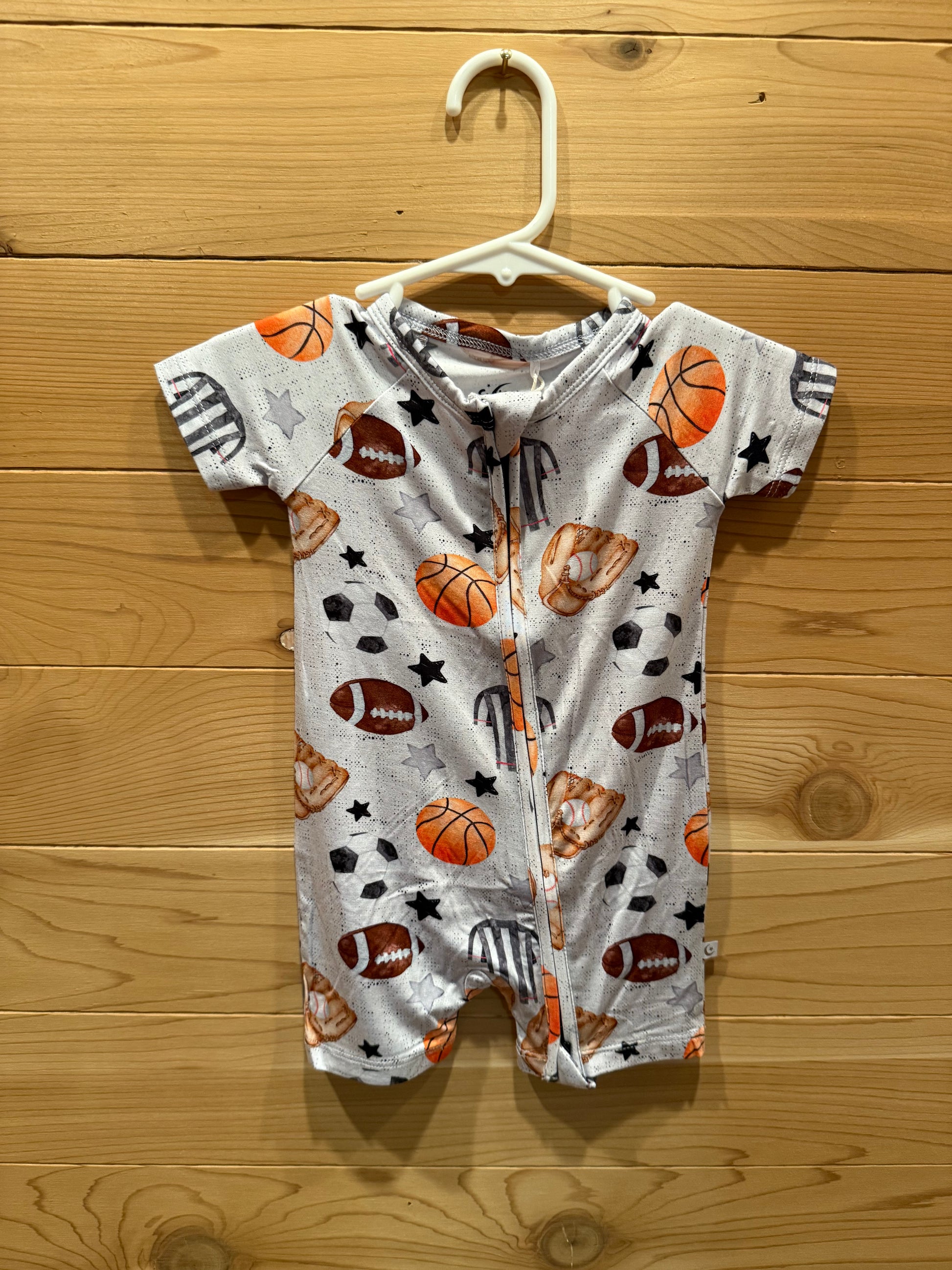 3-6 month Bamboo Zippy. Features fold-over hands and feet and a smooth double zipper for easy changes. Available in 10 adorable prints.
